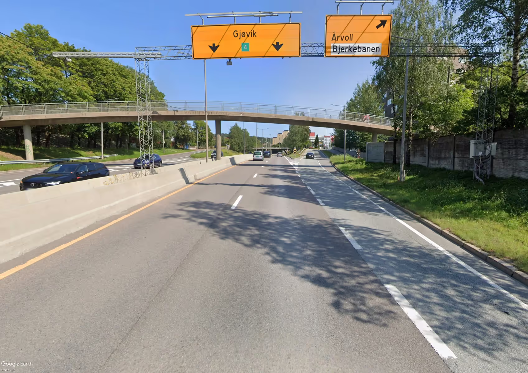 Dette er et fartsreduksjonsfelt (avkjøringsfelt) helt til høyre. Hensikten er å lede trafikk ut av hovedkjørebanen og gi plass til å senke farten før avkjøringsrampe eller kryss. Feltet ligger normalt på høyre side, starter etter et sperreområde/skravert trekant som du ikke skal kjøre i, og er ofte markert med piler og skilt som varsler avkjøring. Riktig bruk er å holde farten flytende i gjennomgående kjørefelt, blinke i god tid, sjekke speil og blindsone, legge seg rolig over når feltet begynner, og først deretter bremse ned til passende fart for avkjøringen. Slik unngår du unødvendig bremsing i hovedfeltet og bidrar til jevn trafikkavvikling.